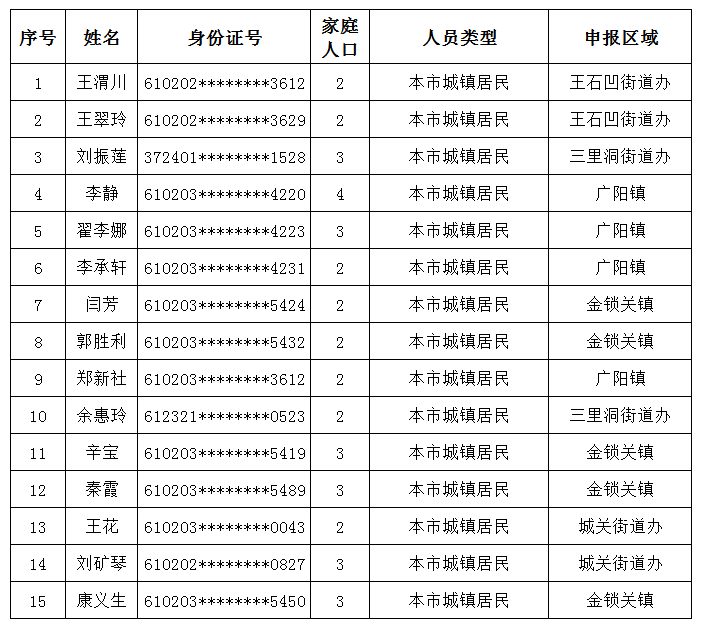 根据《铜川市住房和城乡建设局关于印发<新区锦绣园1-7#楼287套公租房分配方案>的通知》(铜住建发〔2025〕95号)要求,我单位对印台区已申报新区保障房的家庭进行资格审查。现将符合条件的拟分配新区两室一厅保障房家庭予以公示,公示五个工作日:2025年11月24日至2025年11月28日。如有异议,请于2025年12月1日前向铜川市印台区房屋管理中心举报,举报电话0919-4563830。