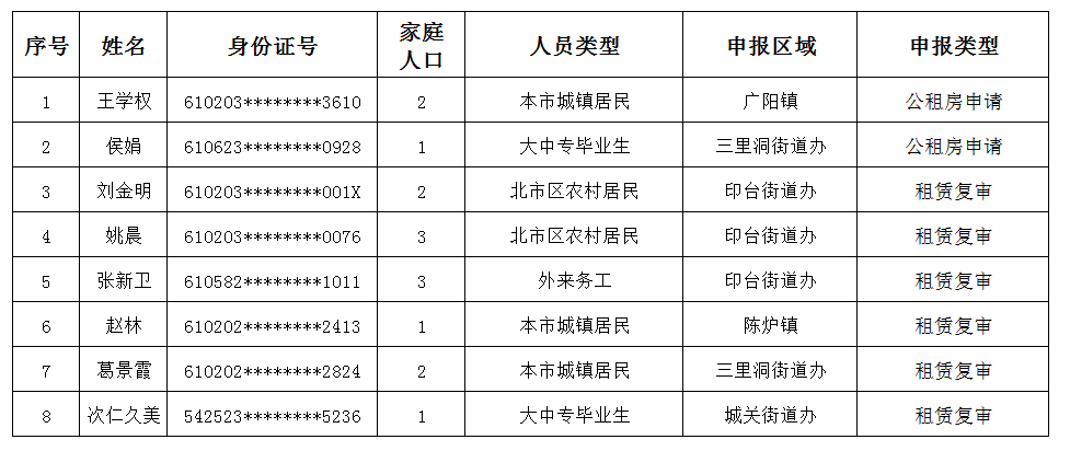 为了确保我区保障性住房分配的公平、公正、公开,根据市、区保障房申请、审核相关规定,经区房屋管理中心资料审核,现将符合条件的拟分配保障房家庭进行公示。公示五个工作日:2025年12月4日至2025年12月10日。如有异议,请于2025年12月11日前向铜川市印台区房屋管理中心举报,联系电话0919-4563830。